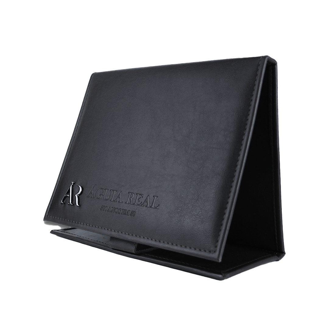 Pasta de Apresentação Preta feita em couro sintético e botão magnético.